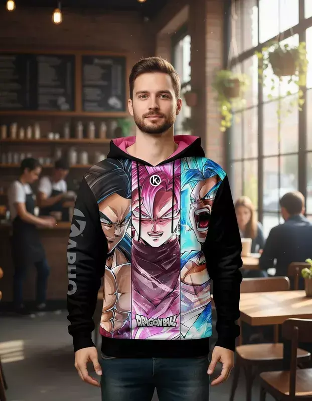 ¡Entrená como un saiyajin y andá cómodo todo el día! Este buzo 100% sublimado en HD 4K no destiñe y es super resistente gracias a su doble tela: poliéster con Ketten y microfibra interna. Con capucha forrada, cordón regulable y bolsillo canguro para guardar tus Dragon Balls. Disponible en talles para niños y adultos.