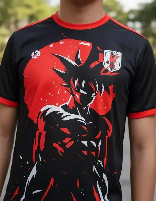 ¡Descubrí la camiseta Japón 2024 Goku Negra Roja para niños de Kapho! Con un diseño exclusivo 100% sublimado en calidad HD 4K, esta camiseta de fútbol combina estilo y rendimiento. Confeccionada en tela SET (poliéster con elastano), es suave, de secado rápido y altamente transpirable.